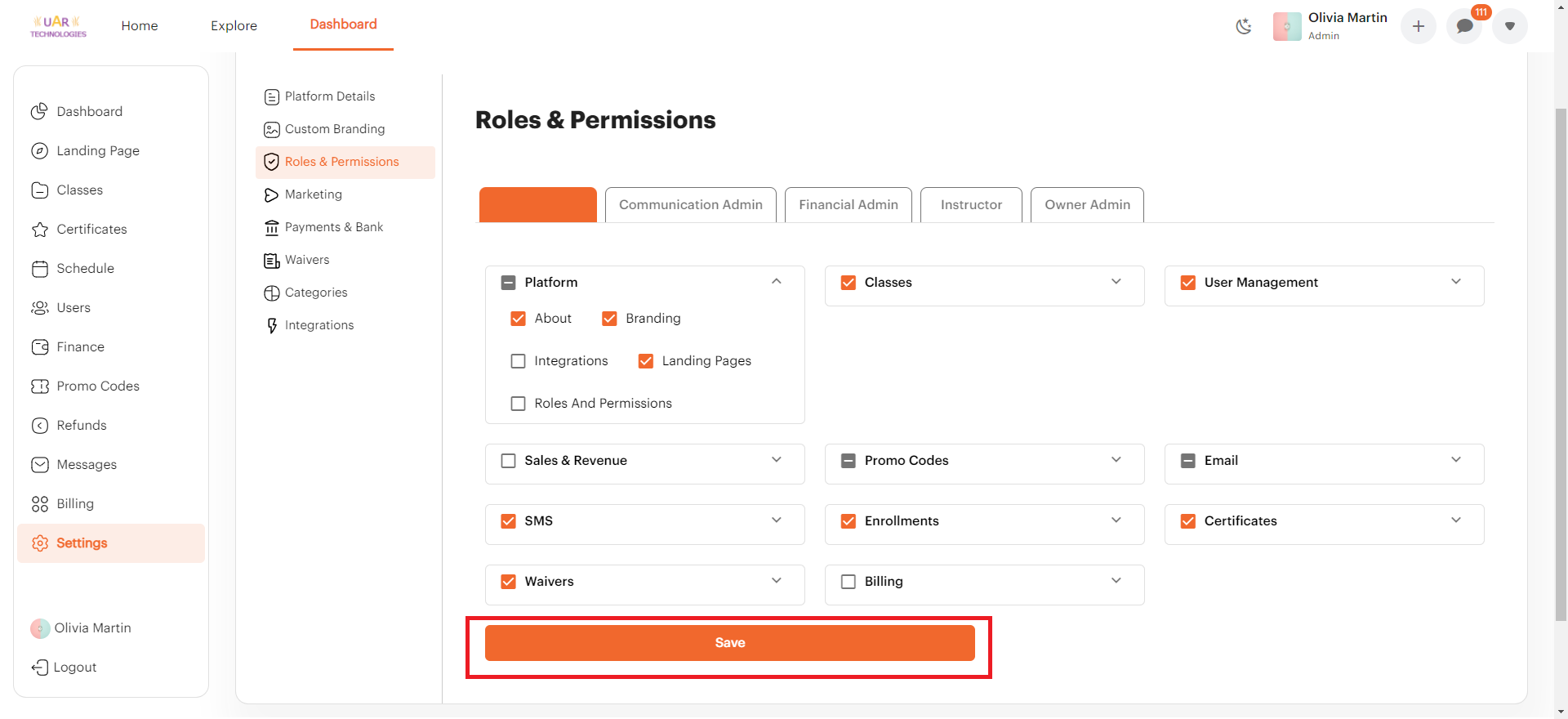 4. Customize your permissions by check-marking the rights you want to give to a particular role.
